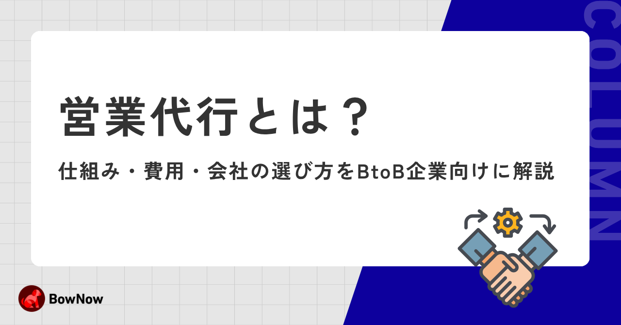 営業代行とは?仕組み・費用・会社の選び方をBtoB企業向けに解説営業代行とは、外部の専門チームに営業戦略の立案から新規開拓・商談・フォローアップまでをまとめて任せる...