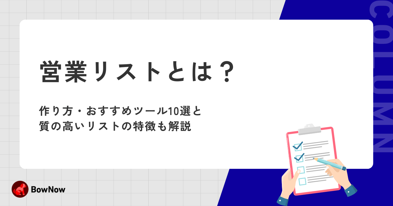営業リストとは?作り方・おすすめツール10選と質の高いリストの特徴も解説営業リストとは、営業活動でアプローチすべき企業や担当者の情報を整理した一覧のことです。「テレアポやメ...