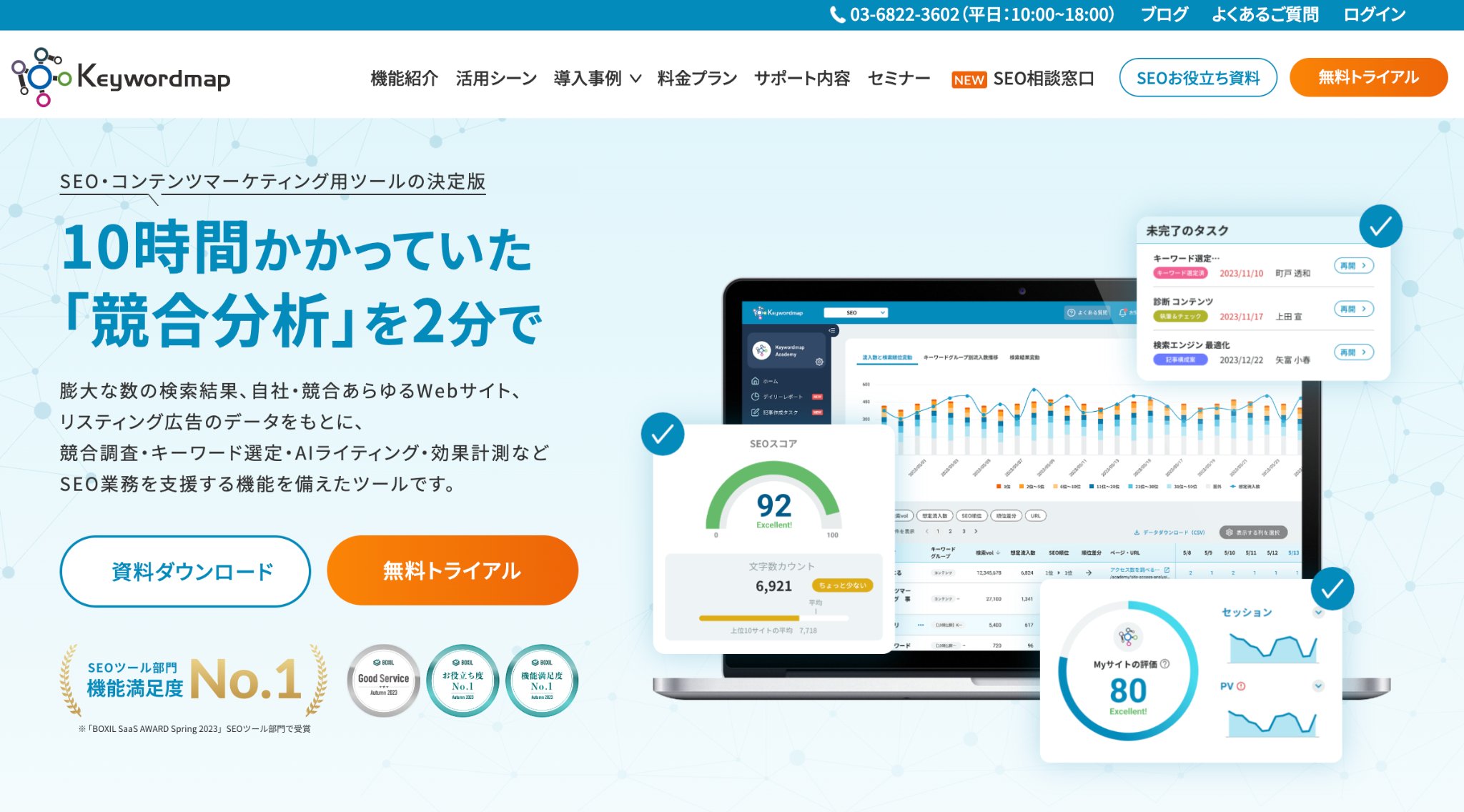 Keywordmapは、日本国内でも最大規模の日本語データを活用したSEO対策ツールで、企業のWebサイト成長を支援する強力な分析機能を備えています。