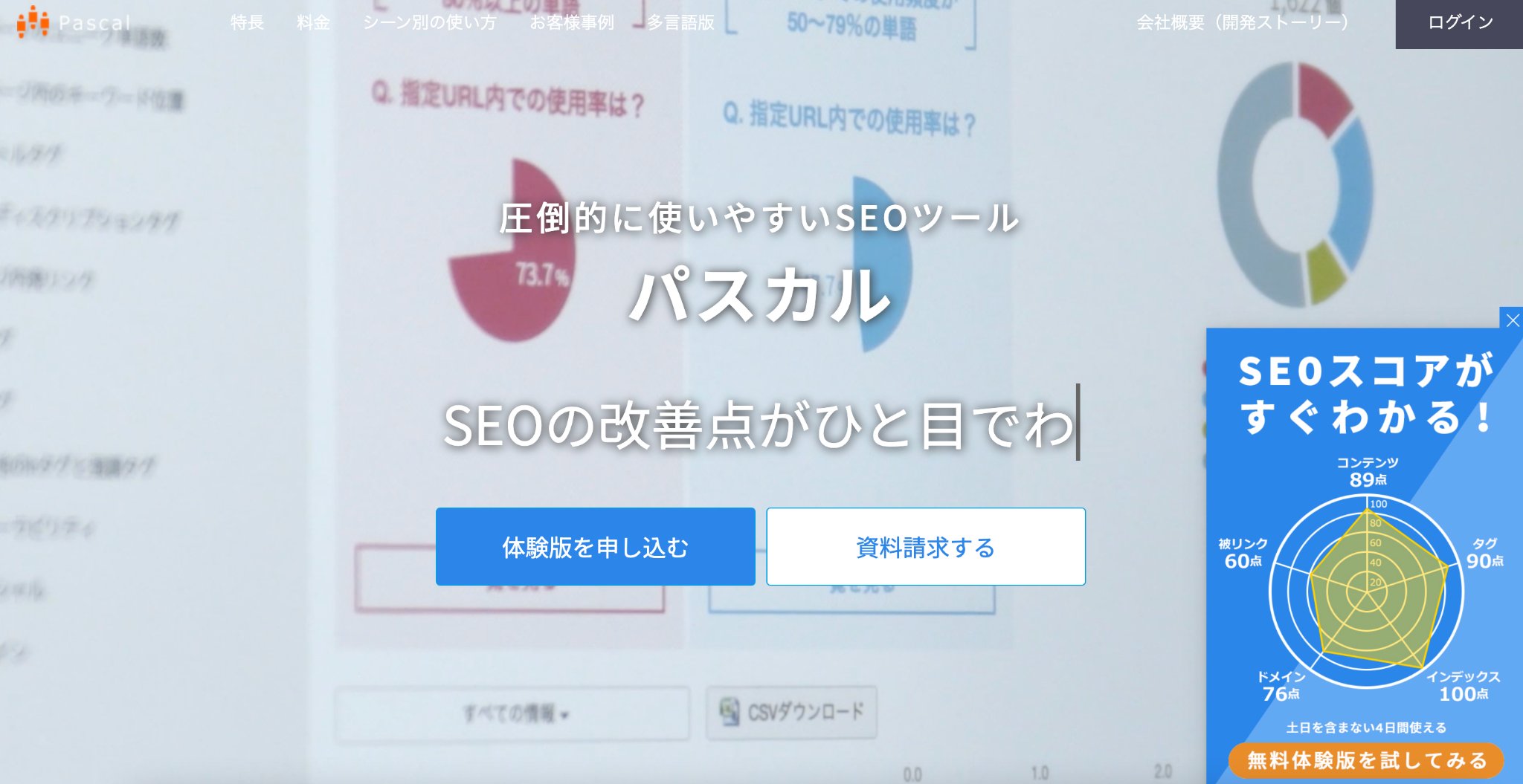 パスカルは、競合サイトのSEO戦略を素早く分析し、効果的なコンテンツ改善をサポートするツールです。