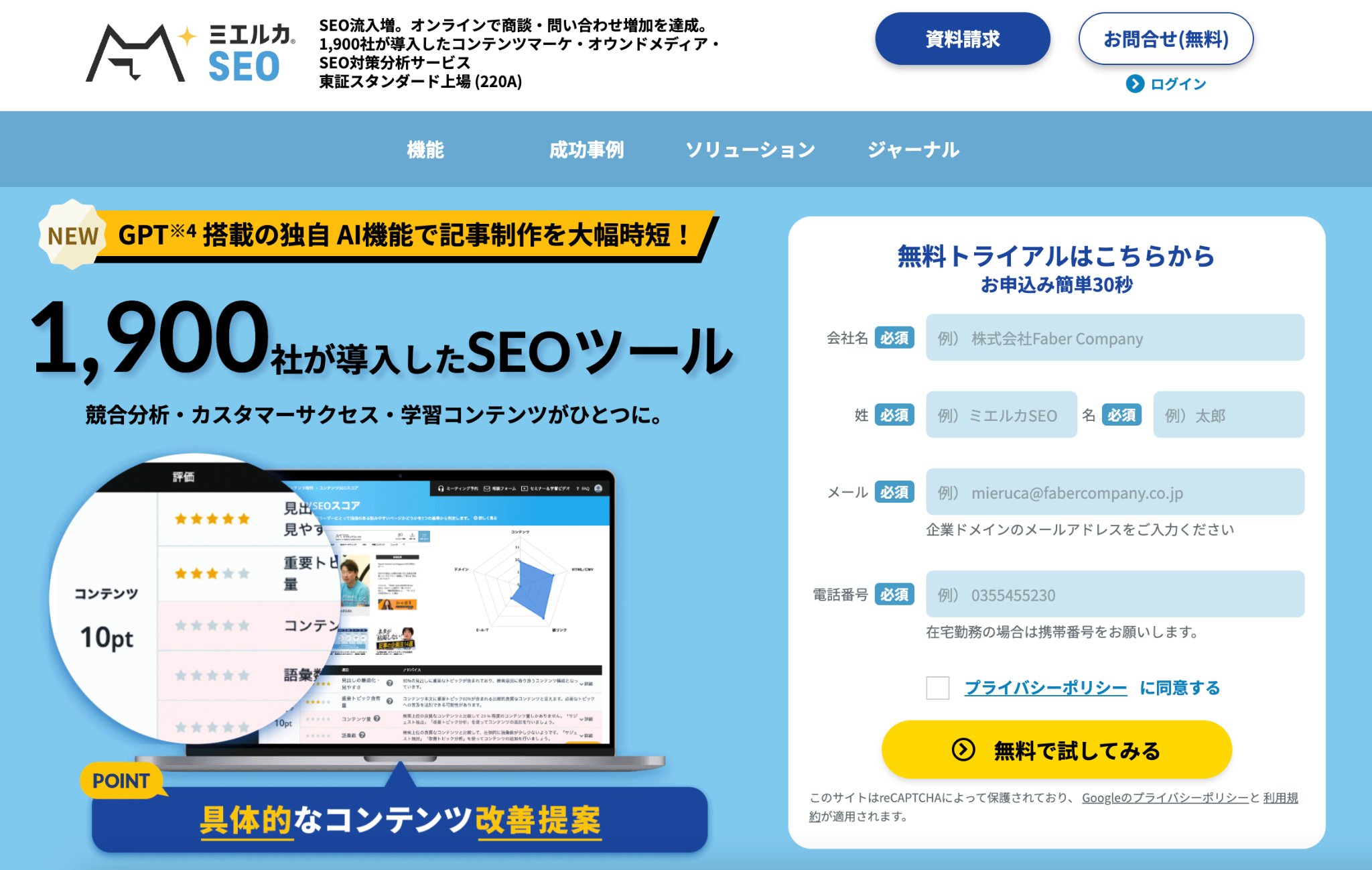 MIERUCAは、SEO対策やコンテンツマーケティングの課題を明確にし、効果的な改善をサポートするツールです。