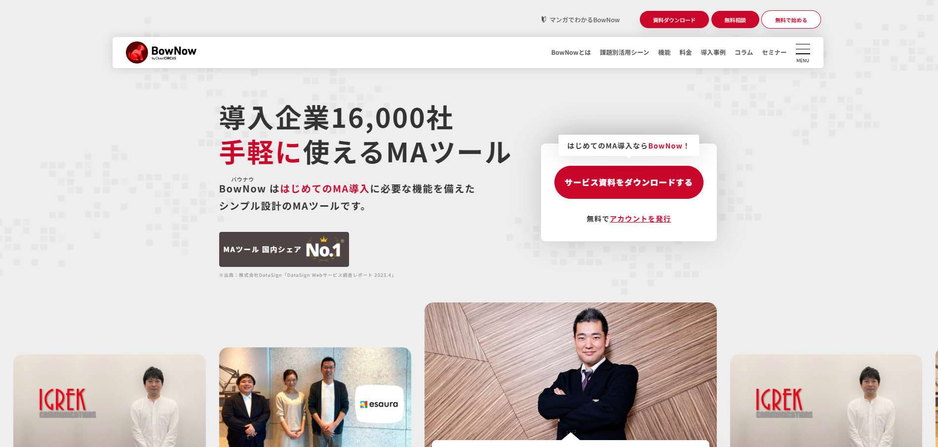 BowNowは、「使いやすさ」と「成果の出しやすさ」にこだわって開発された、はじめてのMA導入にも最適な国産MAツールです。国内シェアNo.1※で、現在16,000社以上に導入されている実績があります。