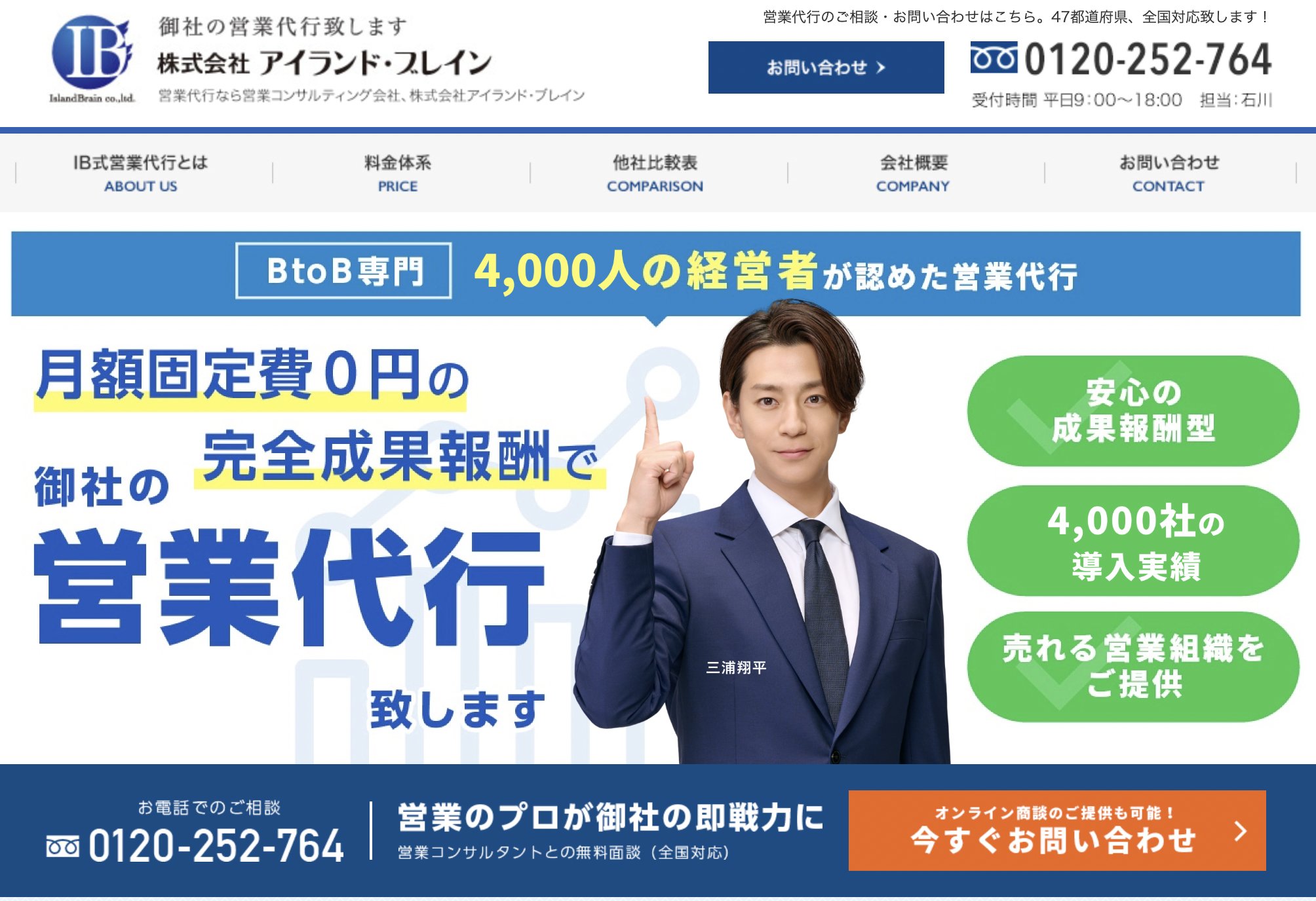 | アイランド・ブレイン | 1アポ2万円〜 | BtoB全般 | 初期・固定費0円。完全人力アプローチ(IB式) |