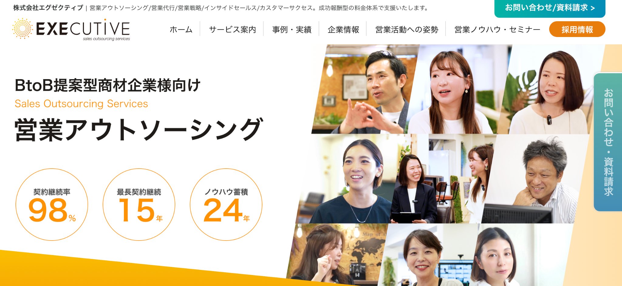 | エグゼクティブ | 成果報酬型 | 製造・IT・建設 | 決裁者アプローチ特化。商談実数7倍増の実績 |