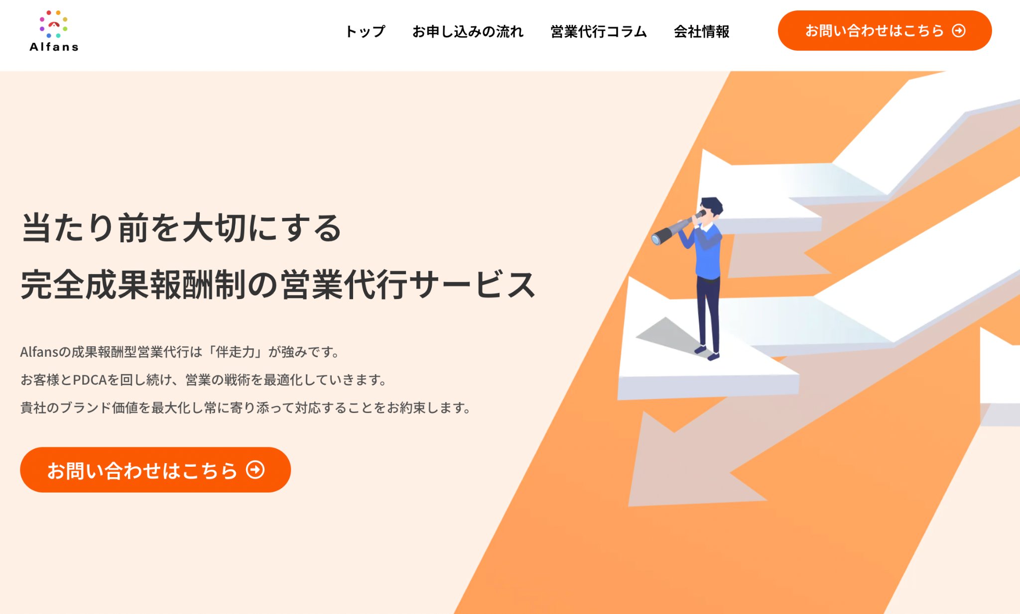 10,000サービス以上の支援実績を持つ、完全成果報酬型の営業代行会社です。