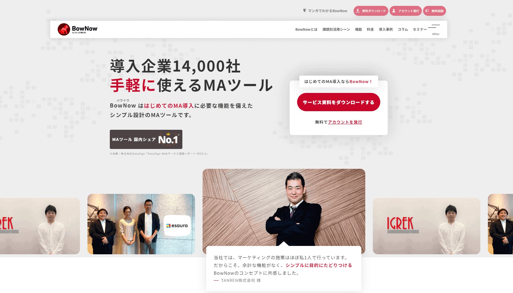 「顧客情報をまとめたい」「成果につながるコンテンツを把握したい」と考えている方におすすめなのが、MAツール BowNow(バウナウ) です。国内シェアNo.1※を誇り、16,000社以上に導入されています。