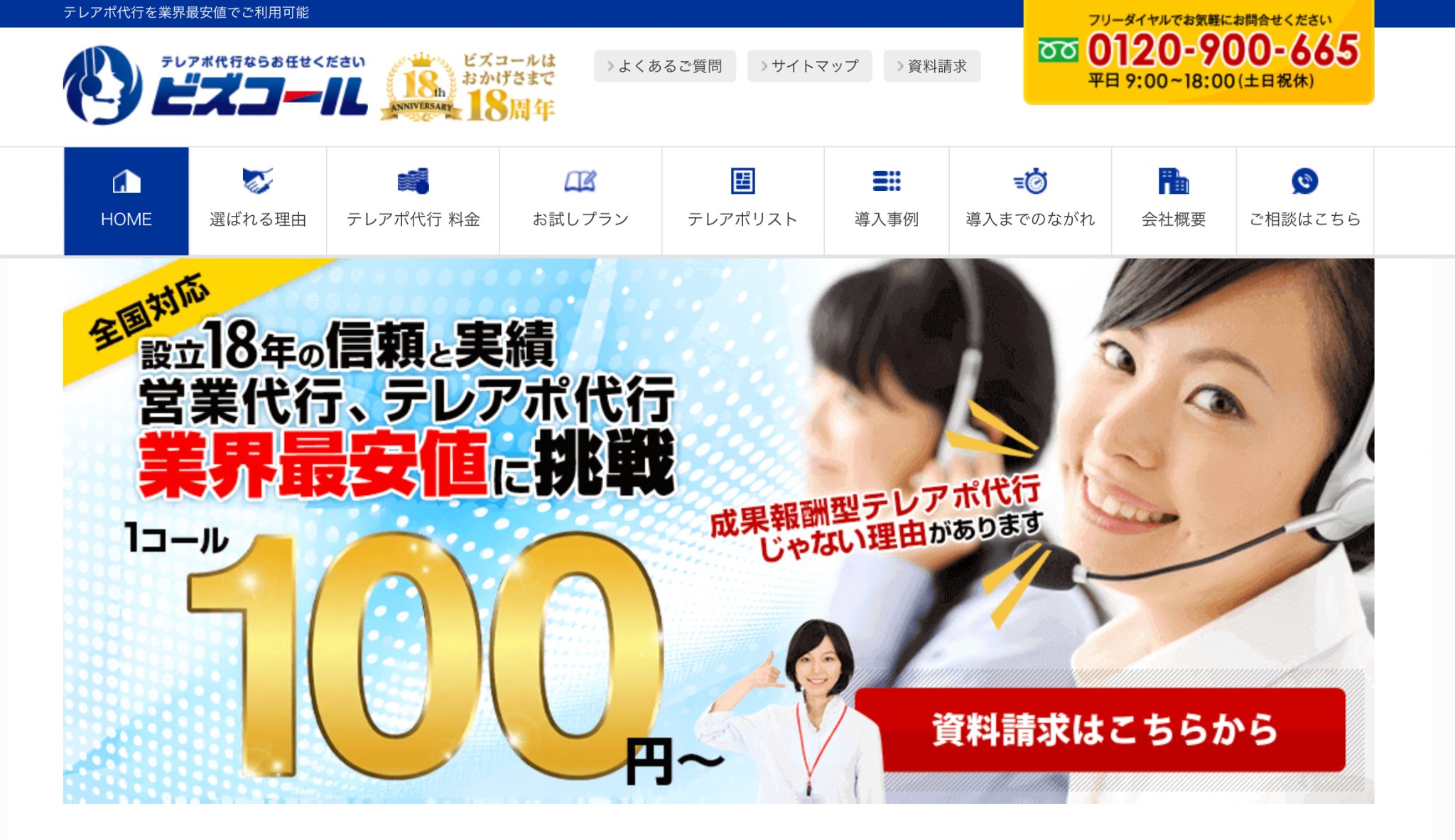 | ビズコール | コール課金型 | 99円〜/コール | ○ | 要問合せ | 経験2年以上のベテランによる高いアポ率 |